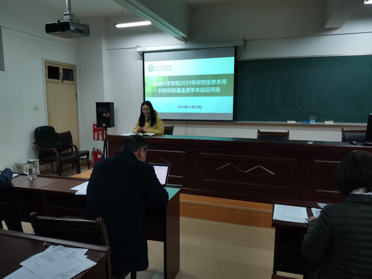 2019年11月25日,yL23411永利官网登录科研创新基金暨学术论坛评选会在理科楼南楼410会议室举行。本次活动有8名硕士研究生报名参加,牛继强教授、王义民教授、李清飞副教授、颜俊博士和闫军辉博士组成评审专家小组,会议由研究生班主任郑茜博士主持。