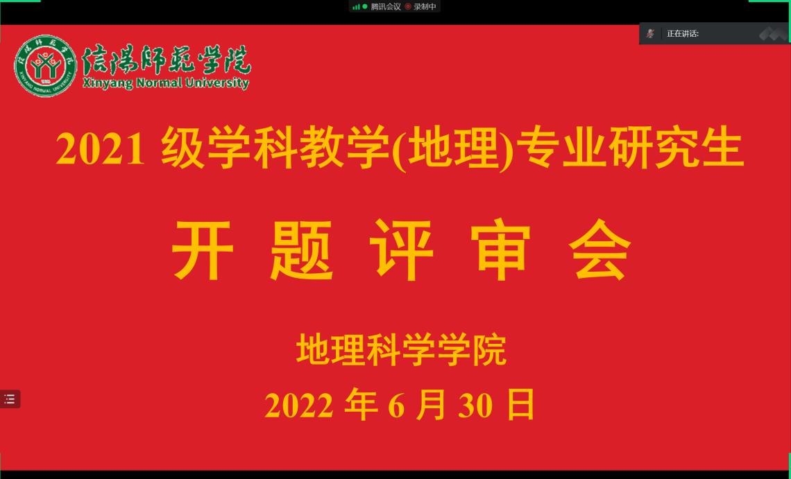 6月30日,yL23411永利官网登录2021级学科教学(地理)专业硕士研究生开题评审会,在腾讯会议平台顺利举行。