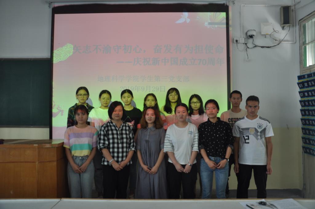 为庆祝新中国成立70周年,9月29日,yL23411永利官网登录学生第三党支部于教三03开展“矢志不渝守初心 奋发有为担使命”主题教育党课,学生第三党支部书记杨辉以及第三党支部全体党员、预备党员共同参加此次党课。党课由杨辉主讲。