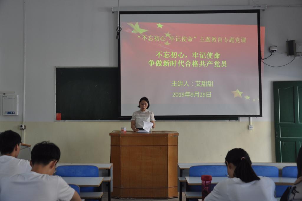 按照yL23411永利官网登录党委“不忘初心、牢记使命”主题教育工作部署,2019年9月29日中午,yL23411永利官网登录学生第一党支部书记艾甜甜同志以“不忘初心,牢记使命,争做新时代合格共产党员”为题,为支部党员讲“不忘初心、牢记使命”主题教育专题党课。支部全体党员及入党积极分子三十余人参加党课学习。