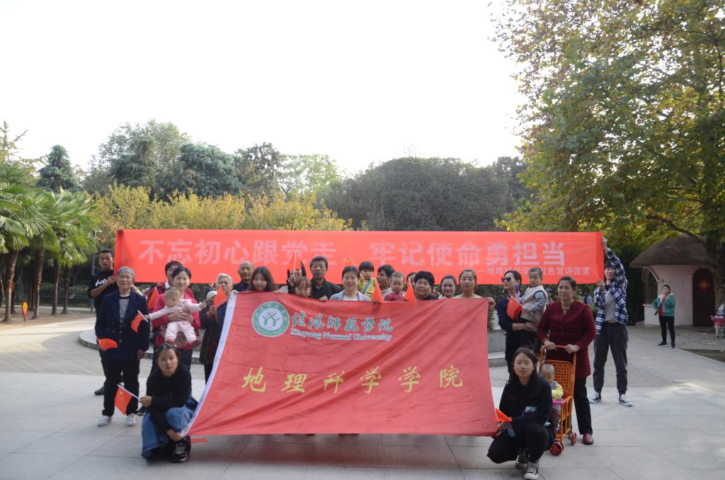 10月29日,yL23411永利官网登录红色宣讲团前往信阳市浉河公园开展“不忘初心、牢记使命”红色宣讲活动。宣讲团由在“讲红色故事,传红色基因”演讲比赛表现突出的学生党员组成。