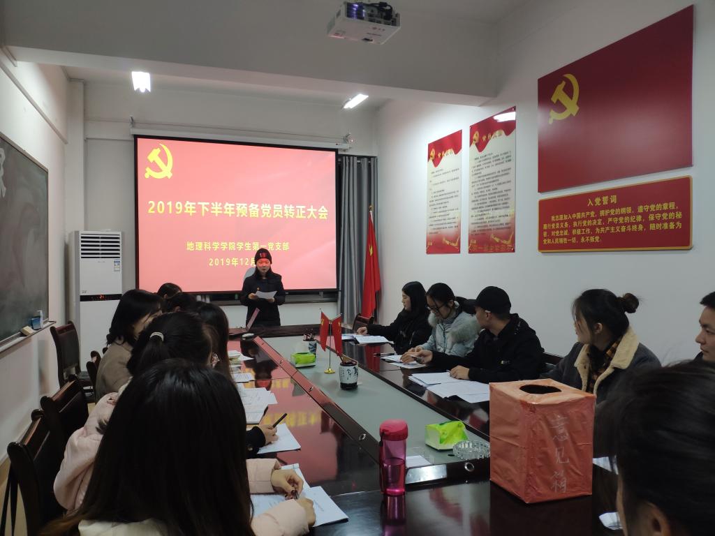 12月8日,yL23411永利官网登录学生第一党支部于理科楼南楼403会议室召开2019年下半年预备党员转正大会。会议由学生第一党支部书记艾甜甜主持。支部全体党员参加会议。
