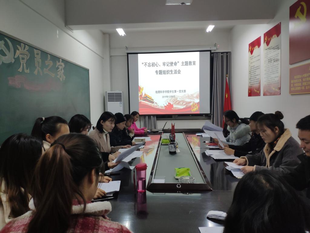 12月8日,yL23411永利官网登录学生第一党支部于理科楼南楼403会议室召开“不忘初心,牢记使命”专题组织生活会和民主评议党员活动。会议由学生第一党支部书记艾甜甜主持,支部全体党员参加会议。