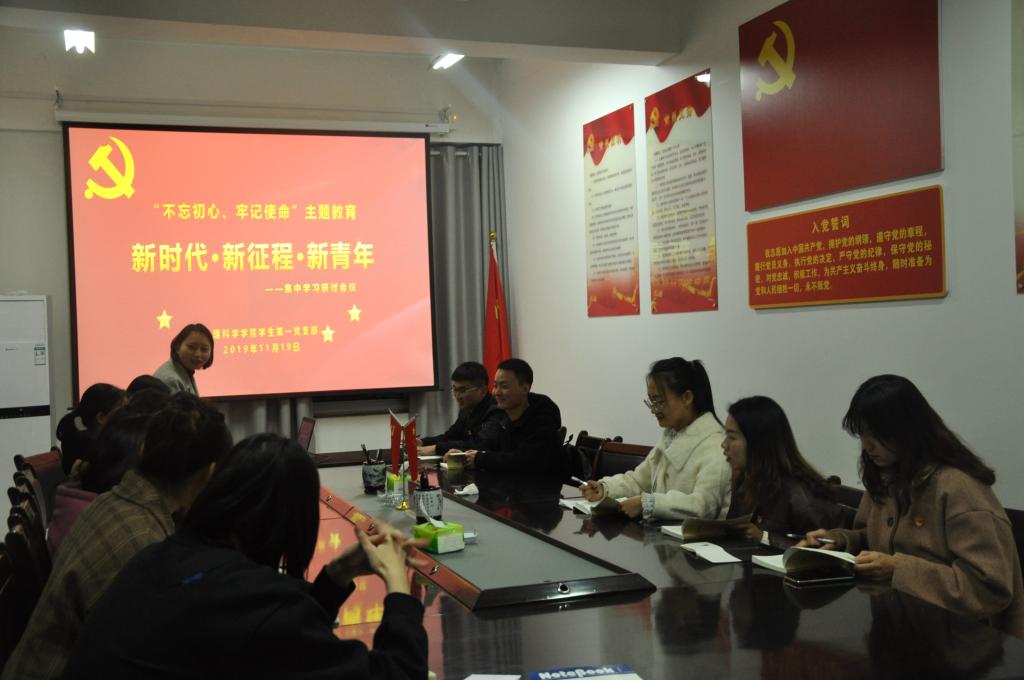 11月19日,yL23411永利官网登录学生第一党支部于理科楼403会议室开展主题教育第三次集中学习研讨,主要围绕“新时代新征程,我们应该做什么”进行教育。研讨会由学生第一党支部书记艾甜甜主持,支部全体党员参与学习研讨。