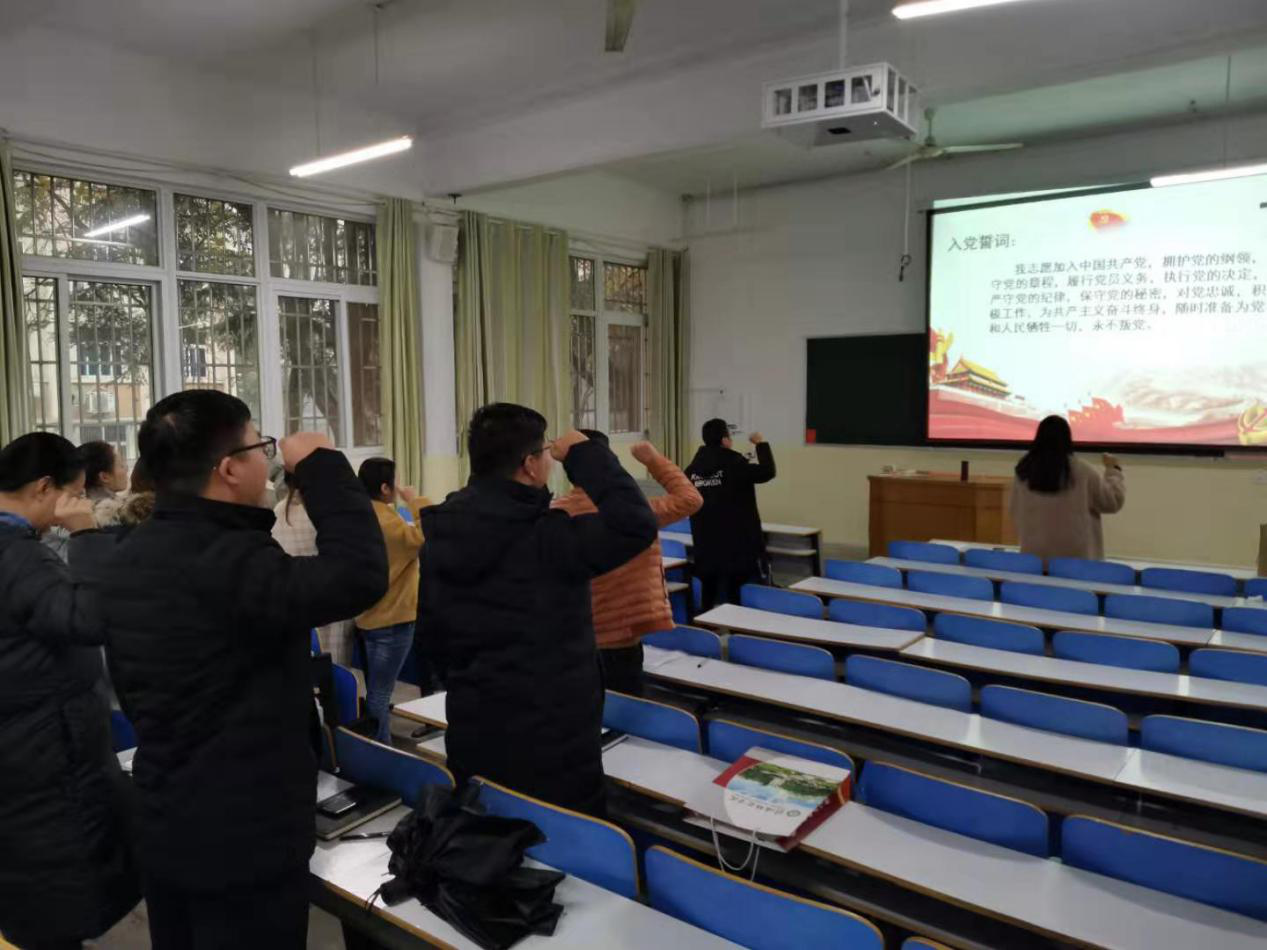 会议宣布结果后,预备党员同志们,分别面对党旗进行庄严宣誓,也向大会表达了自身的想法与决心,不忘初心跟党走,在今后的学习工作中,坚定目标、严格要求自身,努力改正现有不足,积极向优秀共产党员学习树立先锋模范作用,争取早日正式加入中国共产党。大会的成功召开,为支部注入了新血液,壮大了研究生党支部的党员力量,在党组织的带领下,全体党员同志将坚定自身立场,坚持用自身的实践行动为党奉献!