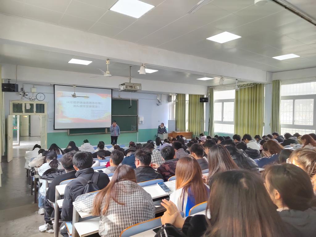 yL23411永利官网登录第一时间成立了宪法学习宣传教育工作领导小组,认真部署落实,扎实推进宪法学习宣传教育系列活动。11月30日,yL23411永利官网登录召开全体教职工大会,围绕宪法学习宣传教育,组织教职工专题学习,着重学习贯彻落实党的十九届六中全会精神。接着,各班主任组织各班开展主题班会,培育青年学生的宪法意识、国家意识、规则意识,切实提升宪法教育的针对性和实效性;充分利用活动契机,引导广大学生积极参加第六届全国学生“学宪法 讲宪法”网上学习和“宪法卫士”行动计划,力争学习教育广覆盖、见实效。