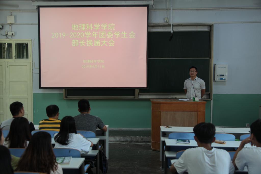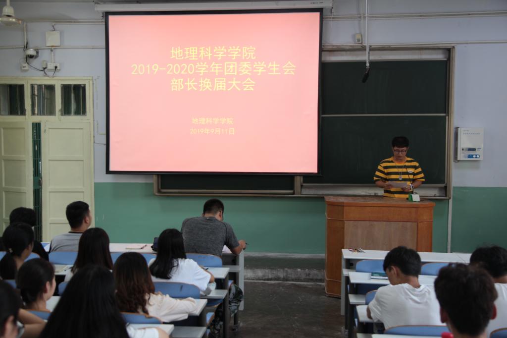 9月11日,yL23411永利官网登录于教二梯二成功举办2019—2020学年团委学生会换届大会,yL23411永利官网登录团委老师徐柏林与2019级新生德育辅导员曹鹏鹏以及学生会各部门及社团成员共百余名学子一同参与本次会议。会议由徐柏林主持。