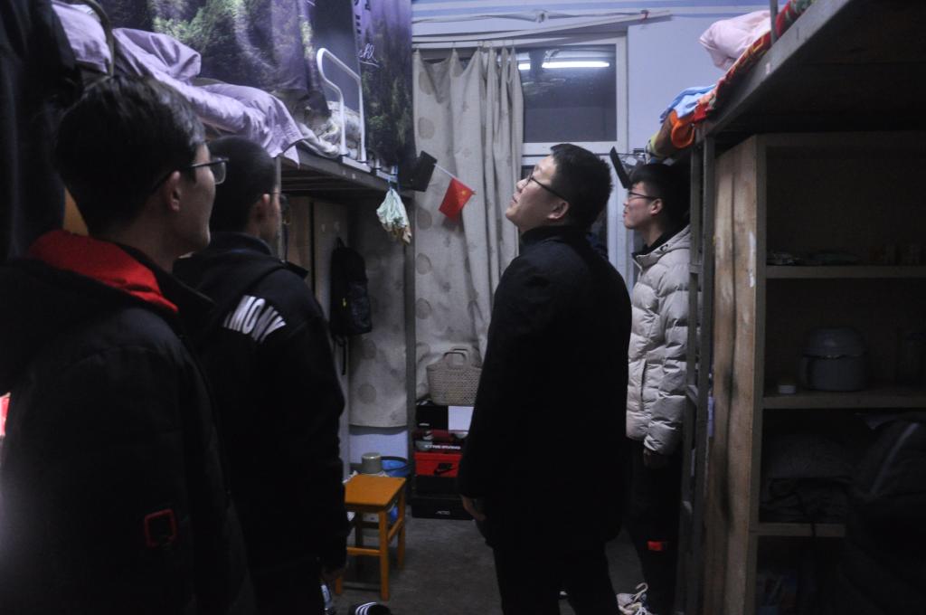 在生活部成员的带领下,曹鹏鹏首先来到男生宿舍。在走访过程中,曹鹏鹏认真查看学生宿舍内的用电安全和内务整理情况,强调学生要提高安全用电和宿舍卫生意识,营造一个良好的生活氛围。期间,曹鹏鹏就如何养成良好的生活习惯等问题与同学们做了深入的交流,并建议同学们合理安排自己的时间,在认真学习专业知识的同时积极参加社团活动,注重自身各方面能力的提高。另外,临近期末考试,曹鹏鹏告诫学生一定要认真对待,以踏实严谨的态度进入备考学习状态,做好充足的准备,并鼓励他们养成积极乐观,健康向上的习惯,期望每位学生都能有一个绚丽多彩的大学生活。晚上九点,男生和女生宿舍全部走访完毕。