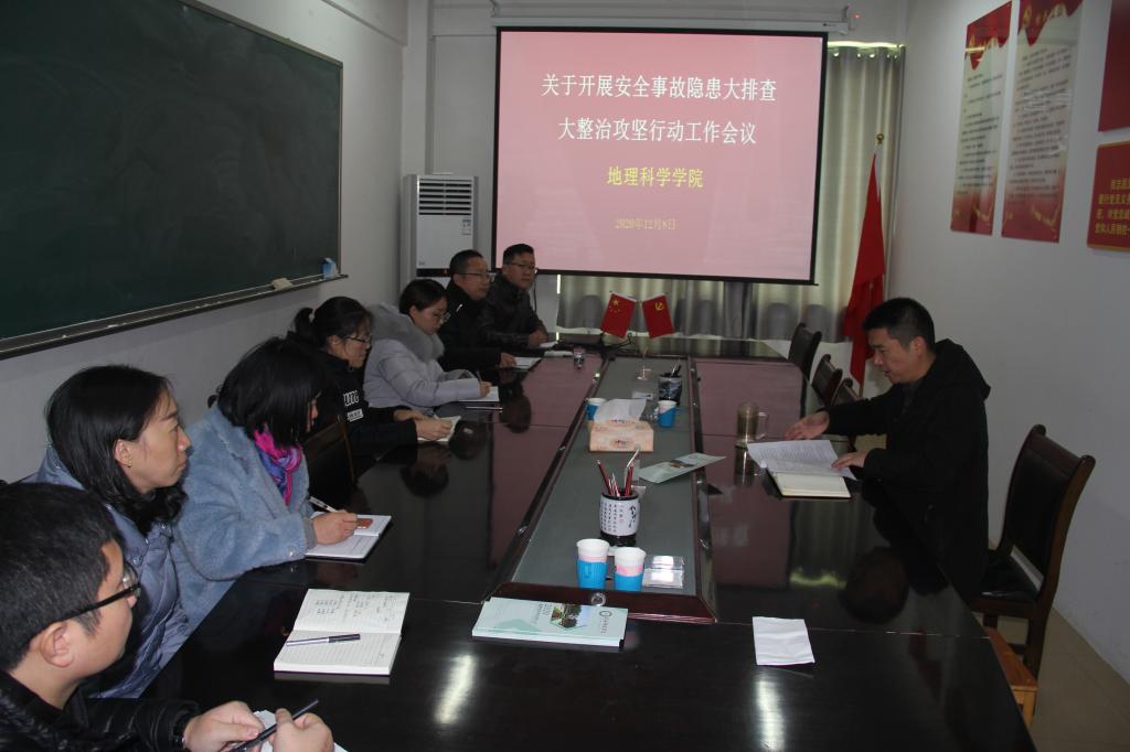 为进一步加强学生安全教育,提高学生安全意识和避险能力,12月8日,yL23411永利官网登录于理科楼南403会议室召开安全事故隐患大排查大整治攻坚行动工作会议,学院党委副书记朱伟及全体辅导员参会,会议由朱伟主持。