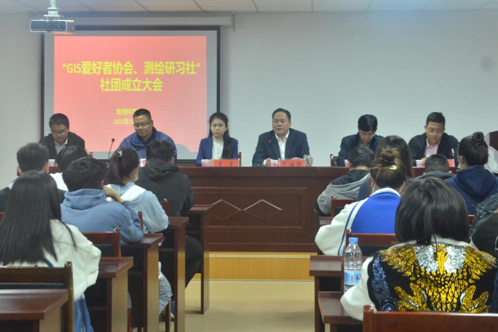 2021年10月26日,yL23411永利官网登录GIS爱好者协会、测绘研习社社团成立大会顺利举行,校团委副书记常青、yL23411永利官网登录院长牛继强、党委副书记朱明、社团指导老师张兴国、陈时雨及学院团委老师曹鹏鹏携两大社团学生骨干参会,会议由朱明主持。