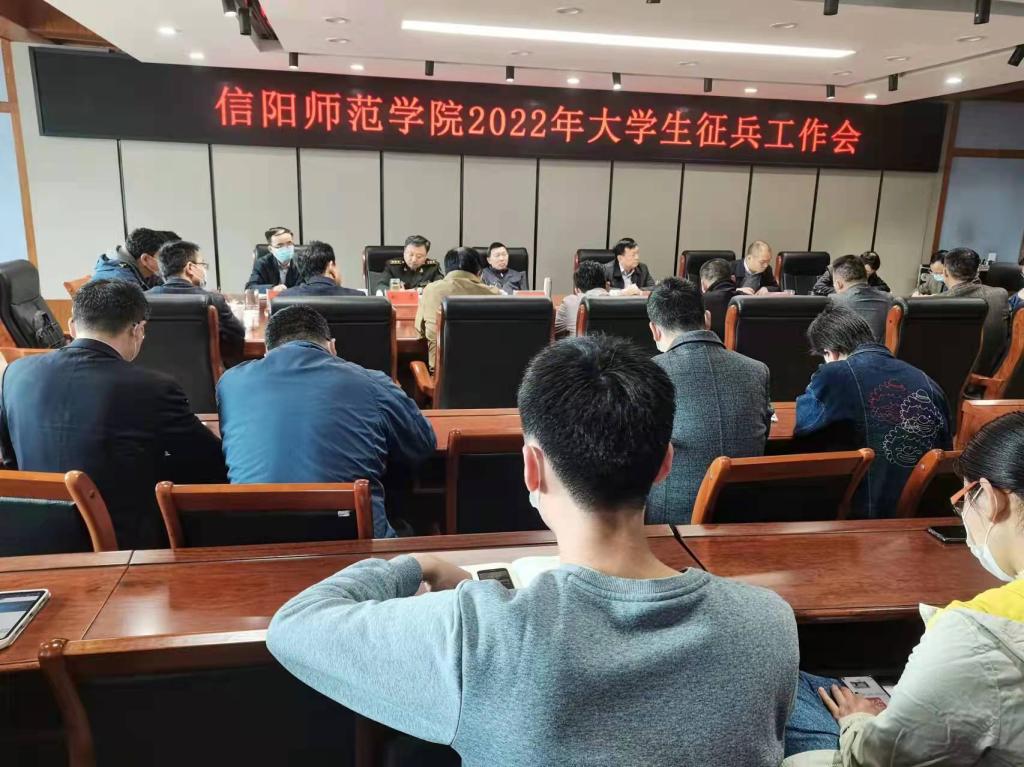 会上,校人民武装部负责同志传达了全国、省、市征兵工作会议精神,并对我校2022年征兵工作进行安排。姚磊结合信阳市工作实际,对征兵工作相关政策进行了详细解读。