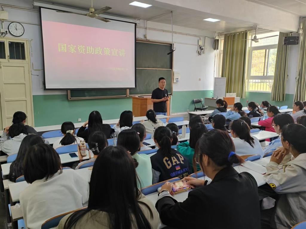 10月18日,yL23411永利官网登录于教二梯1和教二梯2顺利召开2022-2023学年资助宣讲会。yL23411永利官网登录资助专员曹鹏鹏、各班级学生代表共120余人一同参加了此次宣讲会。