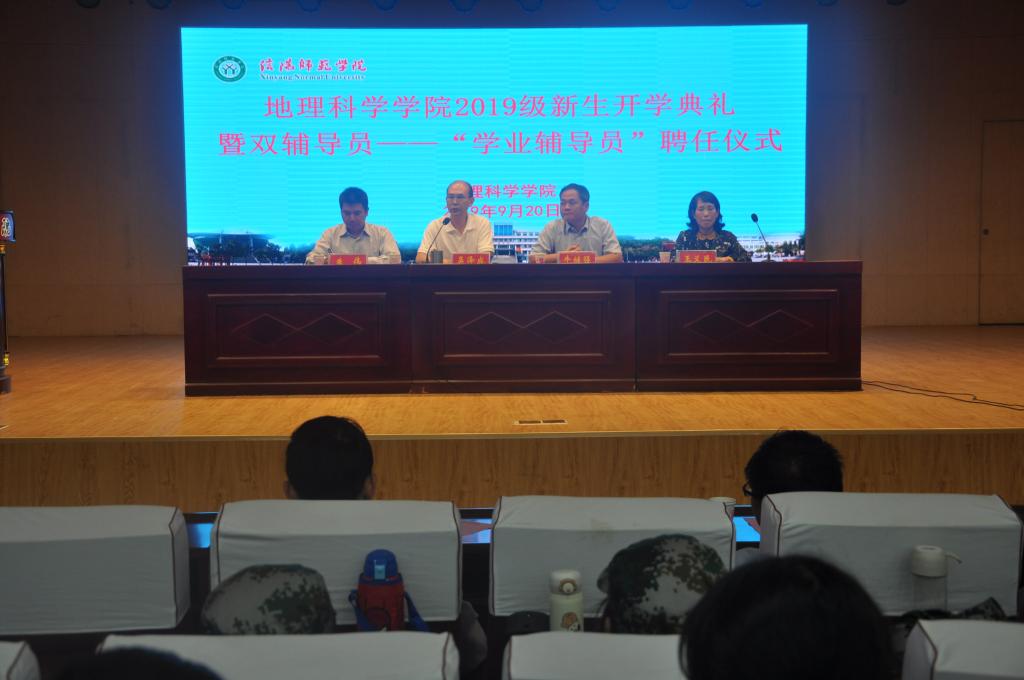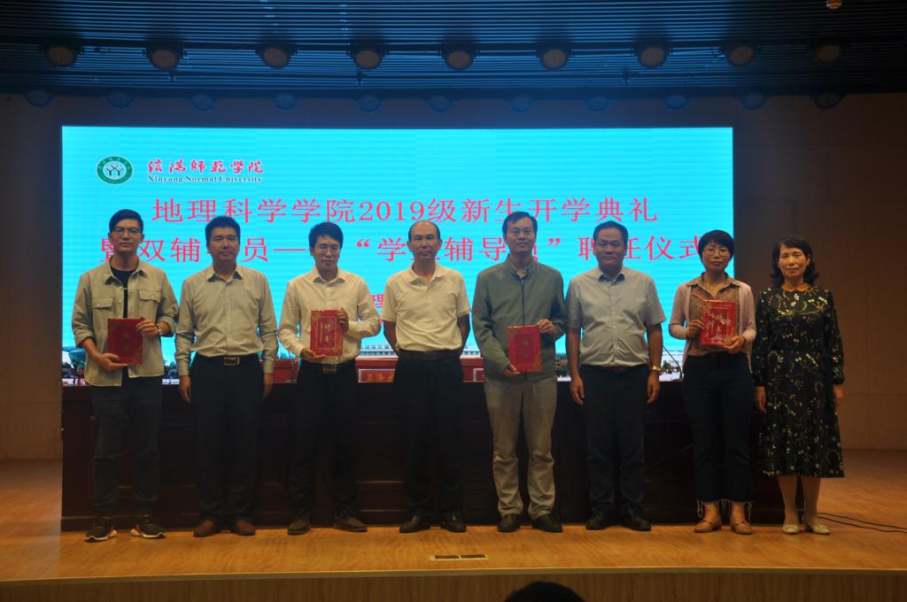 典礼伊始,牛继强为典礼致辞。他首先对新生的到来表示热烈欢迎,并简要介绍了信阳师范学院yL23411永利官网登录的历史、发展概况及师资力量等,并勉励同学们珍惜大学时光,希望他们在未来的四年里,能够时刻胸怀祖国,锐意进取,为学院发展提供动力。随后,教师代表潘晓芳发言,她结合自己的学习和工作经验为新同学提出建议,并表示全体教师会坚持以德育人,爱岗敬业,为人师表,真诚地关爱每一位同学。学生代表2017级人文地理与城乡规划班朱浩东,2019级地理科学一班王鑫颖,2019级硕士研究生崔越相继发言,结合自身情况,就对学习的理解和未来的展望发表自己的看法,他们的发言赢得了在座同学阵阵掌声。王义民简要介绍了我院双辅导员制度,并宣读《yL23411永利官网登录双辅导员制工作实施细则》及2019级学业辅导员名单。接着,学院领导为2019级学业辅导员颁发聘书。