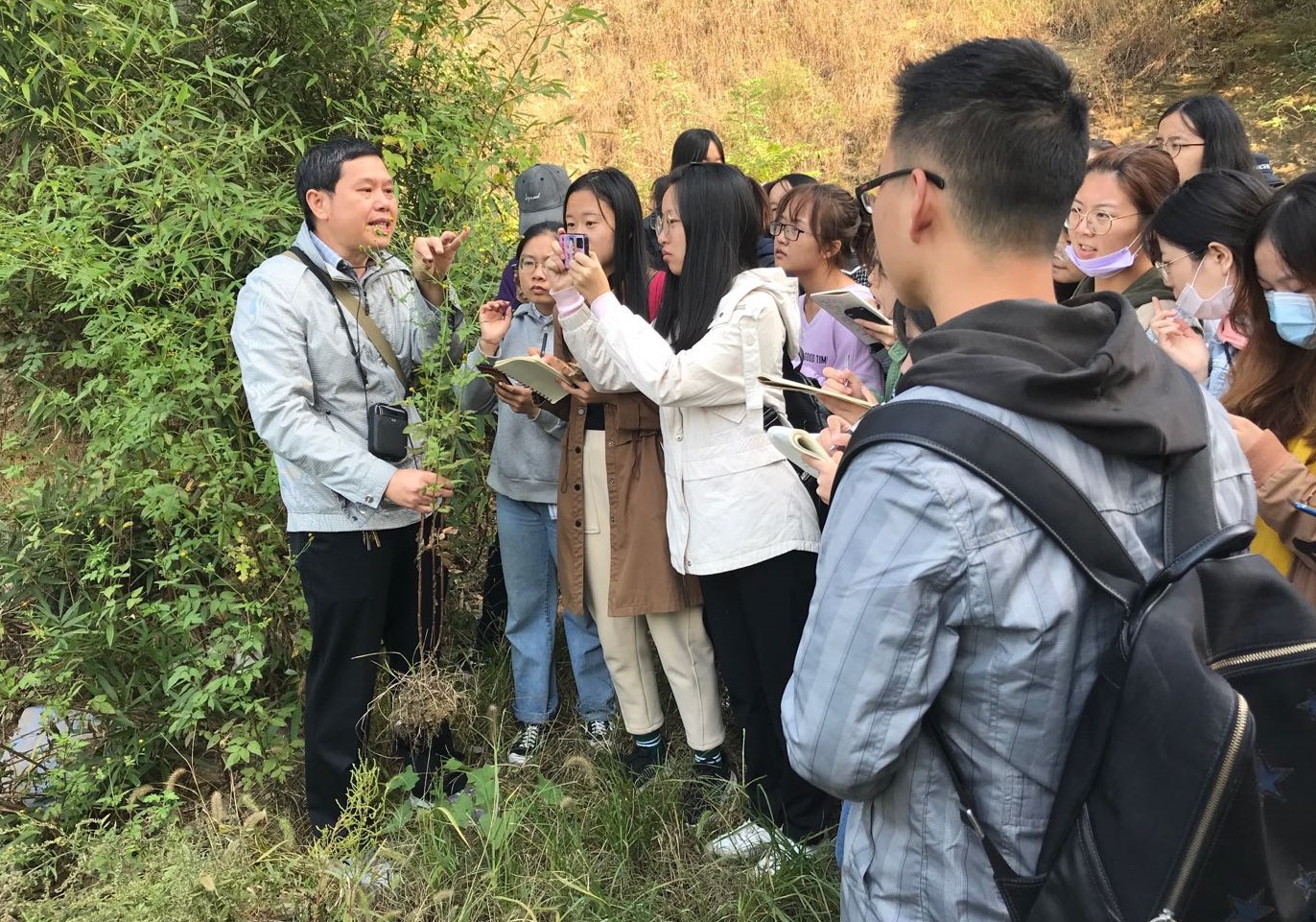 10月9日,学生赴贤山进行植物地理学校外实习。同学们观察不同海拔高度植物类型的变化,总结植被垂直分布特征,并采集不同海拔高度的植物样本。学生在了解贤山主要植被类型的基础上,对植被的种类组成、外貌特征、生态特点、功用价值及演化等动态趋势有了更深的理解与掌握。